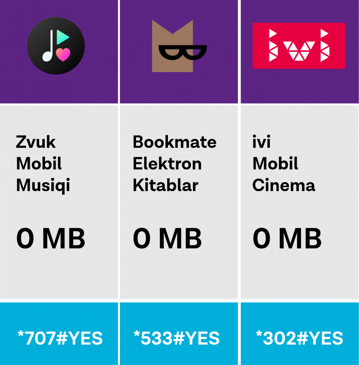 Sizin üçün və sizlərlə yeni rəqəmsal dünyanı yaradan Azercell, yeni ildə də rəqəmsal hədiyyələrini əsirgəməyəcək! 09.12.2019 – 09.01.2020 tarixləri arasında ivi, Bookmate və Zvuk istifadəçilərinə inanılmaz təklifimiz var! ivi-də istədiyiniz qədər film izləyin, Zvuk-la bütün günü musiqi dinləyin və ya Bookmate vasitəsilə yüzlərlə kitabı cihazınıza yükləyin və dinləyin! Siz sadəcə abunə haqqını ödəyirsiniz - istifadə nə qədər olursa olsun, internet paketinizdən “gedəcək” meqabaytların sayı sıfıra bərəbar olacaq!